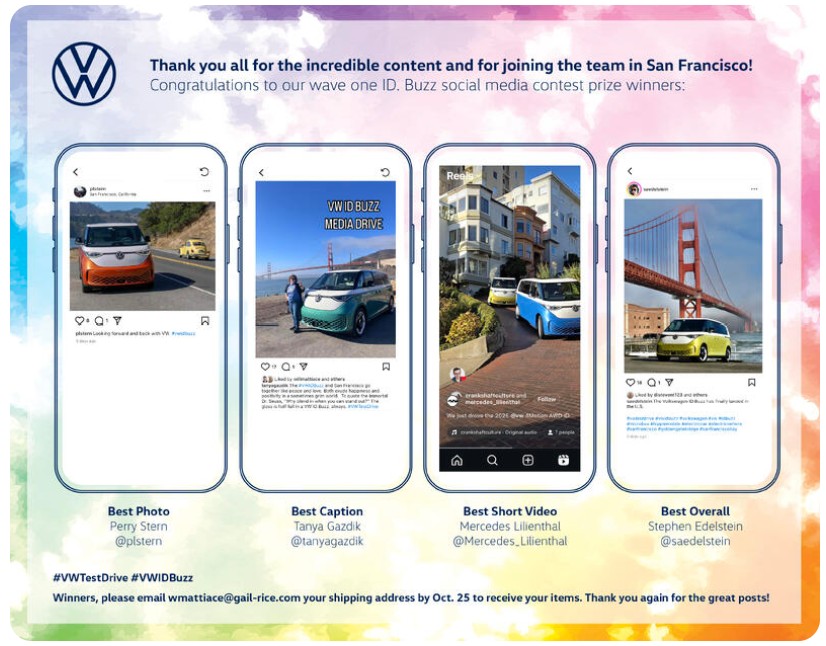 Volkswagen’s Best Short Video for the 2025 ID. Buzz EV first-drive event in San Francisco (issued by Volkswagen of America)